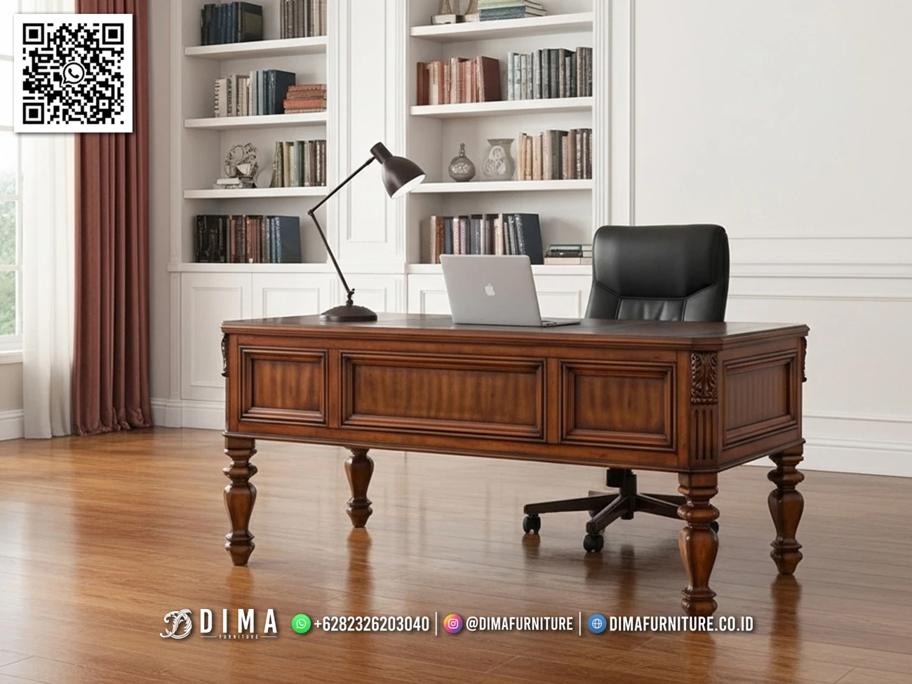 Konsep minimalis menekankan kesederhanaan tanpa mengurangi fungsi. Meja kantor minimalis dirancang dengan bentuk simpel, warna netral, dan detail yang bersih sehingga mudah dipadukan dengan berbagai gaya interior rumah.
