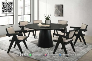 Meja makan bundar minimalis modern sidney black hadir sebagai pilihan tepat untuk ruang makan yang ingin tampil rapi, hangat, dan nyaman. Desain meja berbentuk bundar memberi kesan lebih akrab saat digunakan, sehingga cocok untuk makan bersama keluarga maupun berbincang santai. Warna hitam memberikan tampilan yang tenang dan mudah dipadukan dengan berbagai konsep interior rumah.