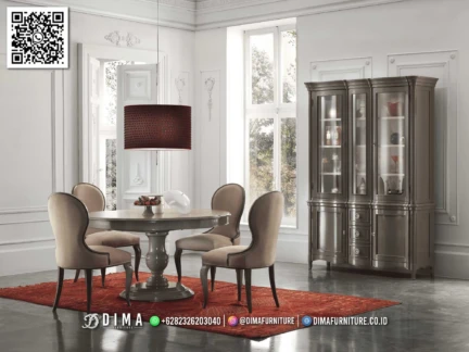 Meja makan jepara mewah terbaru modern dining table ini dirancang untuk anda yang ingin menghadirkan suasana ruang makan yang rapi, modern, dan tetap terasa hangat. Desainnya sederhana namun elegan, dengan bentuk meja bundar dan kaki tengah yang kokoh, menjadikannya pilihan tepat untuk ruang makan berukuran sedang hingga luas. Perpaduan warna netral dan material berkualitas membuat tampilannya mudah dipadukan dengan berbagai gaya interior.