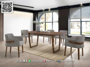 Meja Makan Jepara Minimalis Kayu Jati Berwyn Set MM96