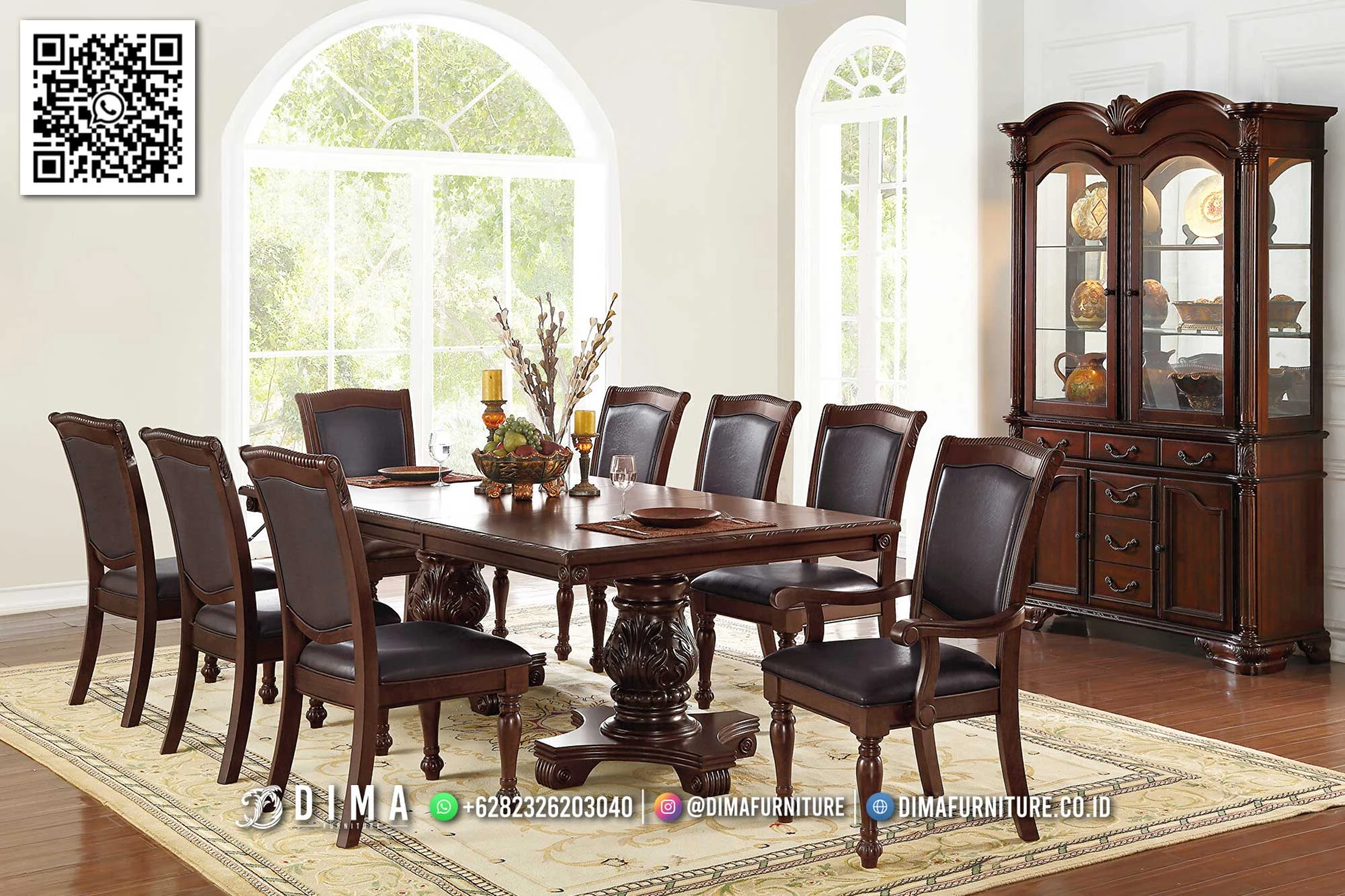 Meja makan klasik mewah kayu jati berkualitas premium cocok untuk rumah bergaya klasik dan elegan. Kuat, rapi, dan nyaman dipakai.