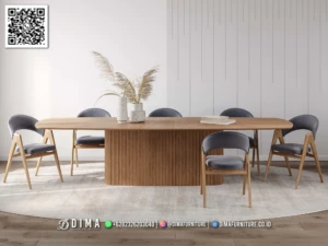 Meja makan lumira grace dari kayu jati berkualitas dengan desain modern stylish, cocok untuk ruang makan yang ingin tampil hangat, rapi, dan elegan.