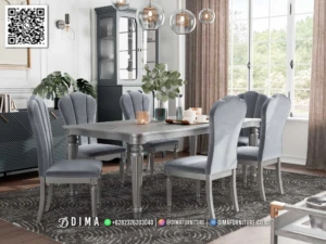 Meja Makan Minimalis Klasik Mewah Cody Grey Set – Elegan & Premium