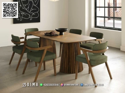 Selain tampilan, aspek kenyamanan juga menjadi perhatian utama. Kursi dirancang dengan dudukan ergonomis, sehingga tetap nyaman meski digunakan dalam waktu cukup lama. Meja makan ini pas untuk aktivitas makan, berbincang santai, hingga menerima tamu dekat di rumah.