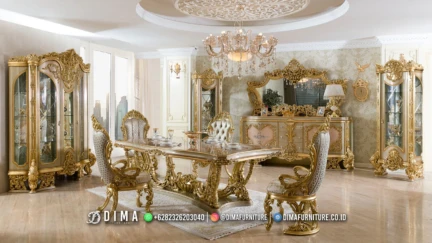 Meja makan ukir mewah eropa gold premium alexa hadir dengan desain klasik elegan, ukiran detail, dan finishing emas yang indah.