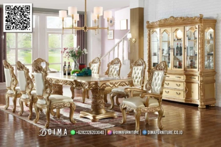 Set meja makan mewah gold exclusive annabella dengan desain klasik elegan, material berkualitas, nyaman dan cocok untuk ruang makan.