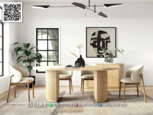 Set meja makan minimalis modern kayu jati liora menghadirkan suasana ruang makan yang lebih rapi, hangat, dan nyaman untuk digunakan setiap hari.